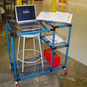 Mobile Laptop Computer Station provides a space for the computer that is secure and ergonomically positions it at a comfortable work height.